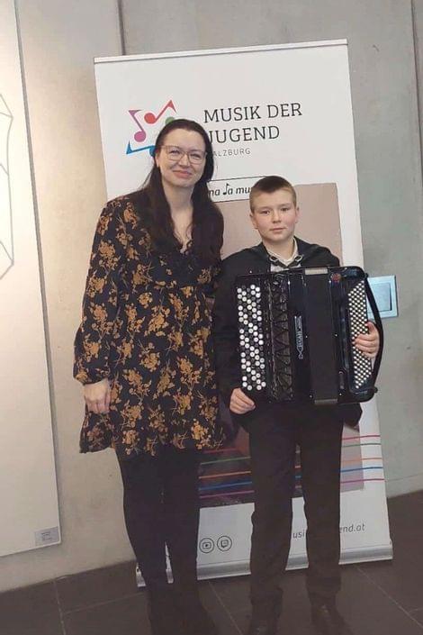 Lukas Johann Seiwald (Akkordeon, AG I): 1. Preis mit Berechtigung zur Teilnahme am Bundeswettbewerb, 91,67 Punkte - Landessieger (Lehrerin: Hana Kovalcikova, MA.)