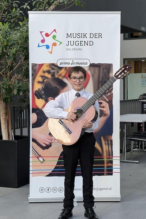 Lukas Hawel (Gitarre), AG I: 1. Preis mit Berechtigung zur Teilnahme am Bundeswettbewerb, 93,50 Punkte (Lehrerin: Mag. Christina Schorn-Mancinelli)
