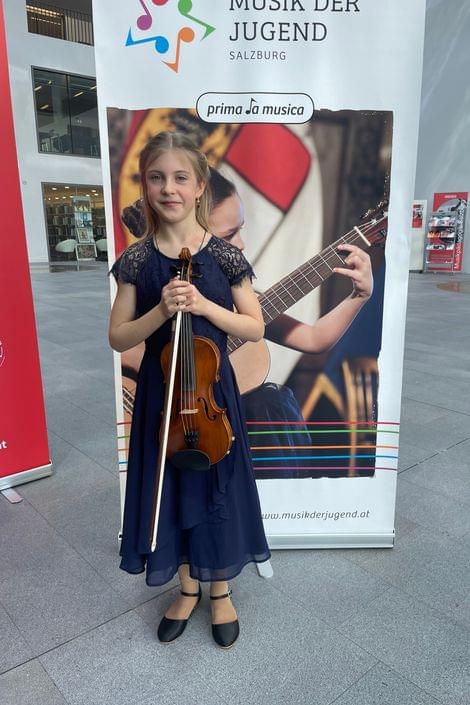 Jasmine Lunenburg (Violine, AG II): 1. Preis mit Berechtigung zur Teilnahme am Bundeswettbewerb, 92,00 Punkte - Landessiegerin (Lehrerin: Birgitta Zamastil, Bakk.art. und Michaels Girardi - Mozarteum Sbg.)