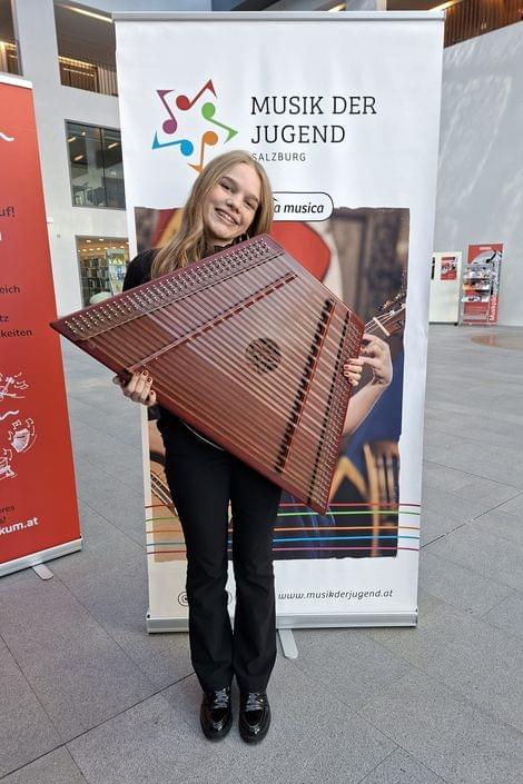 Hannah Katharina Leisinger (Hackbrett, AG III): 1. Preis mit Auszeichnung, 91,75 Punkte - Landessiegerin (Lehrerin: Mag. Almuth Zimmerer-Klinger)