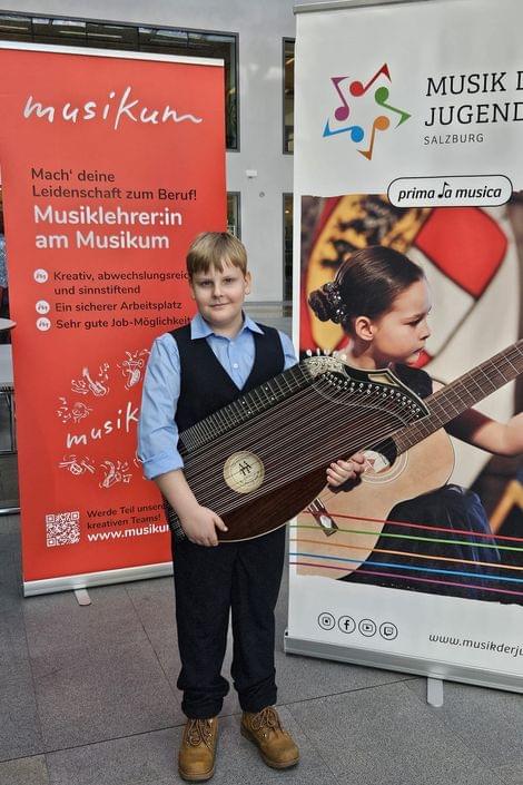 Vincent Lanzinger (Zither, AG I): 1. Preis mit Berechtigung zur Teilnahme am Bundeswettbewerb, 90,50 Punkte - Landessieger (Lehrer: Gerhard Lohinger)
