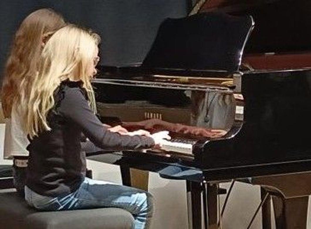 Schülerinnen und Schüler der Klavierklasse zeigen ihr Können auf der Bühne, die bei Marika immer wieder neu gestaltet wird.