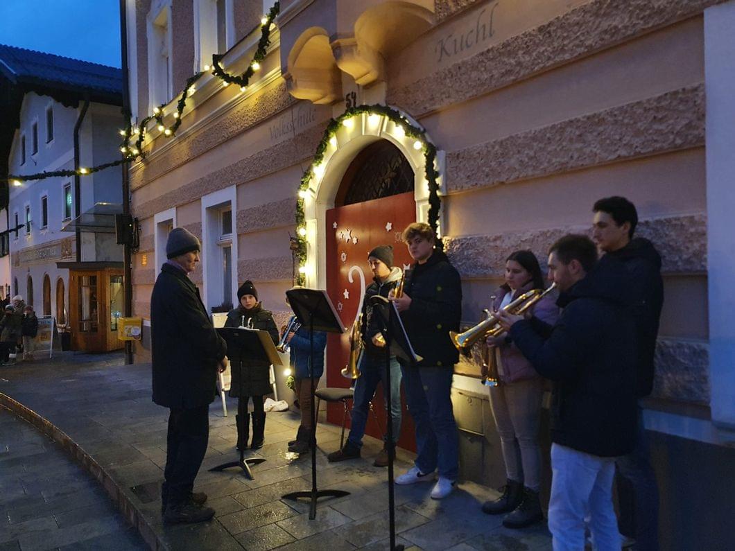 Musikalische Umrahmung durch Schüler:innen der Hornklasse Florian Madleitner des Musikum Zell am See-Saalfelden beim Sternenadvent am Stadtplatz in Zell am See.
