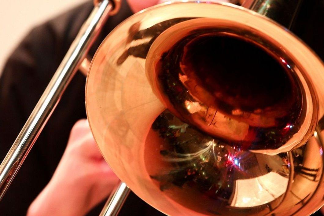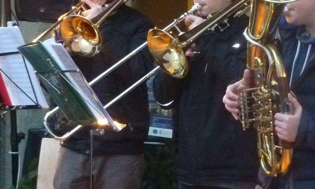 Schüler:innen der Klassen Michael Gauger (Posaune, Tenorhorn), Gerhard Windhofer (Trompete, Flügelhorn) und Rupert Gratz (Tuba) sorgen für vorweihnachtliche Stimmung.