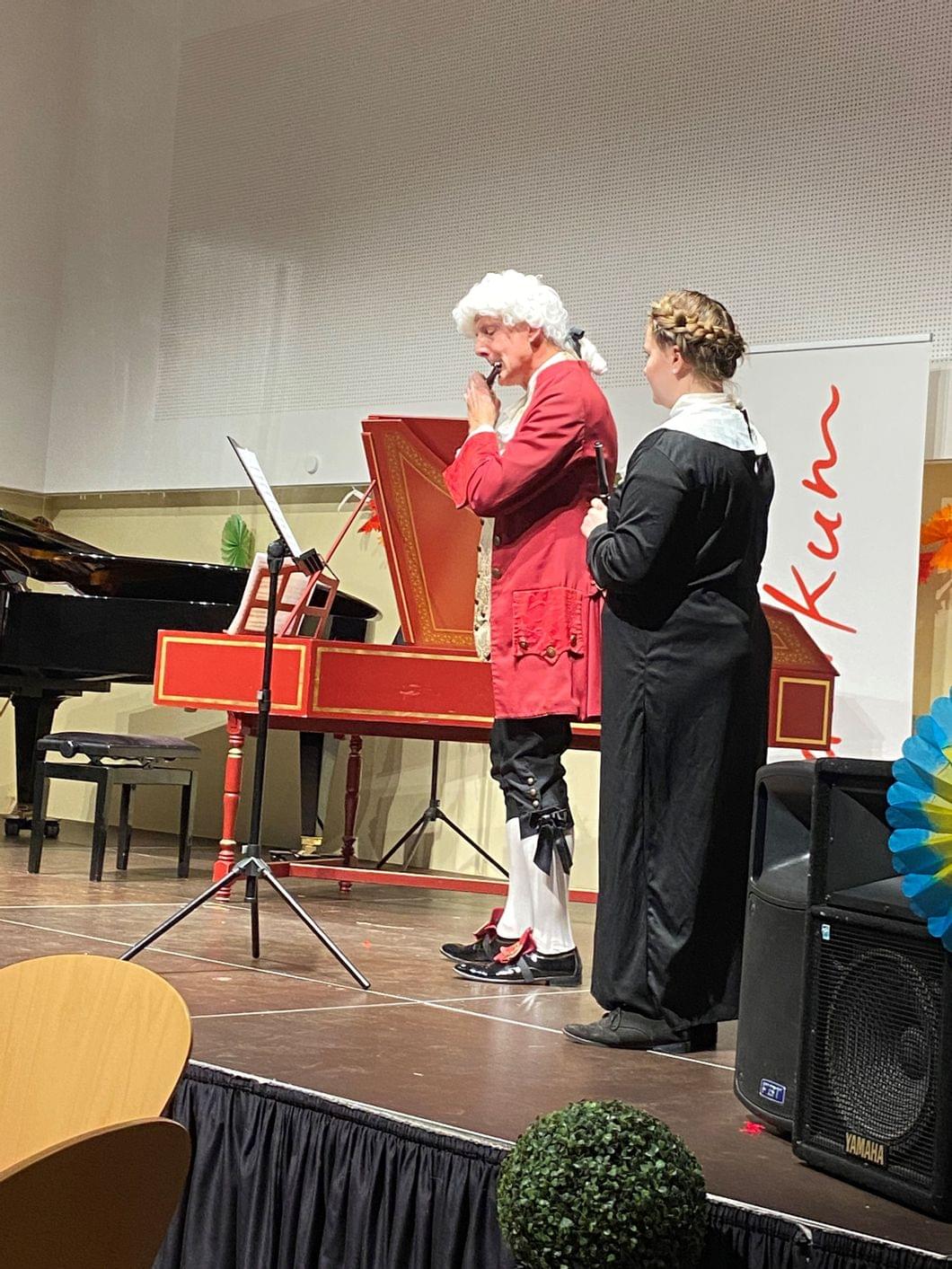 Schülerinnen und Schüler der Blockflötenklasse von Ulrike Baumann, sowie der Querflöten & Gesangsklassen von Waltraud Nagl gestalten eine stimmungsvolle Matinee im Festsaal Bergheim.