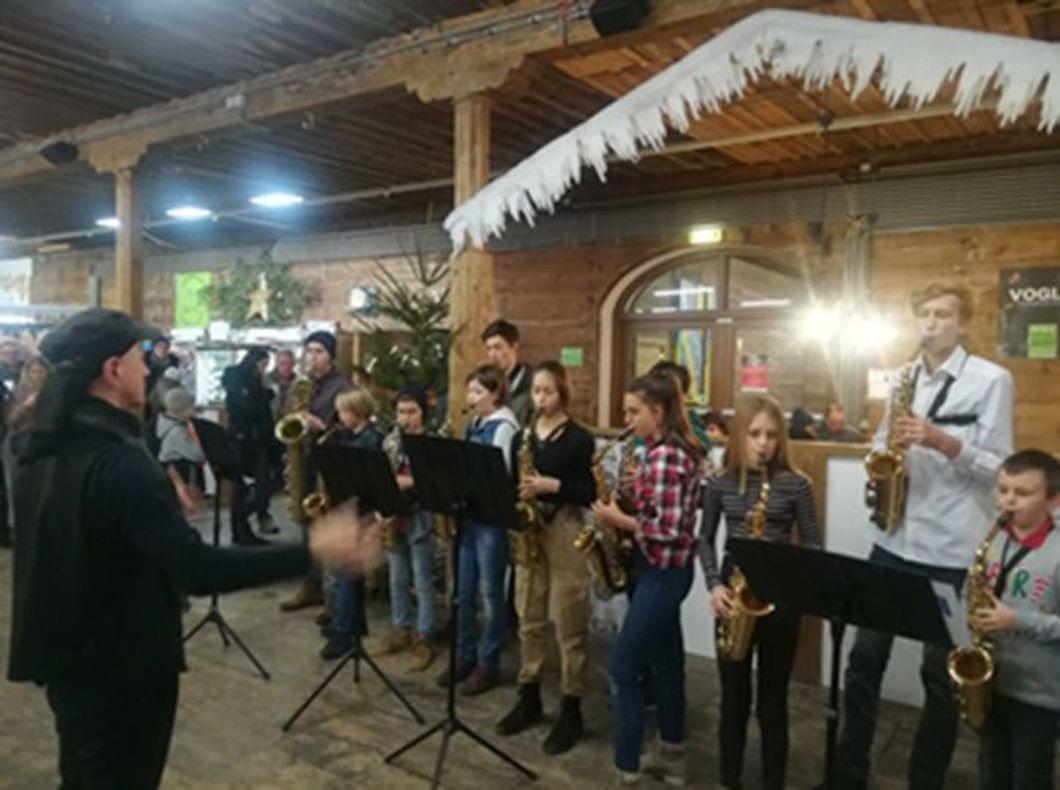 Schüler:innen der Klasse Herbert Hofer (Saxophon) sorgen für vorweihnachtliche Stimmung.