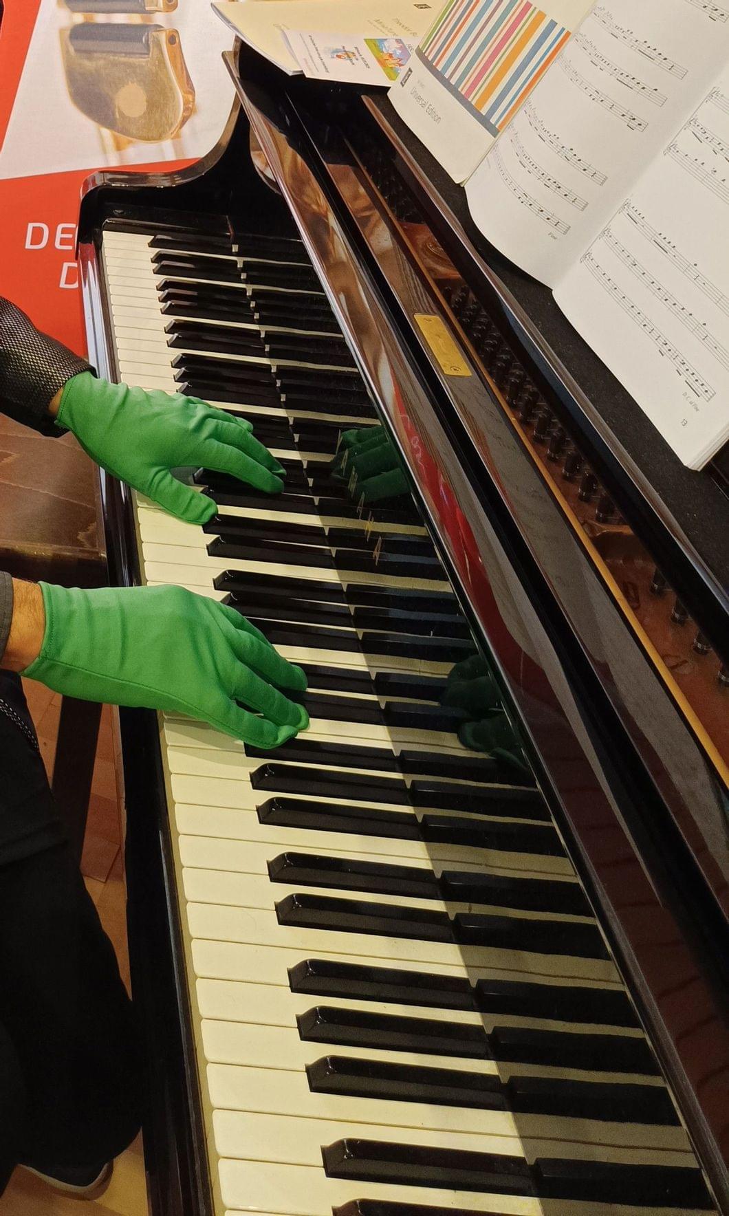 In einem Weihnachtskonzert zeigen Schüler:innen der Klasse Saba Mazaji ihre gelernten Stücke.