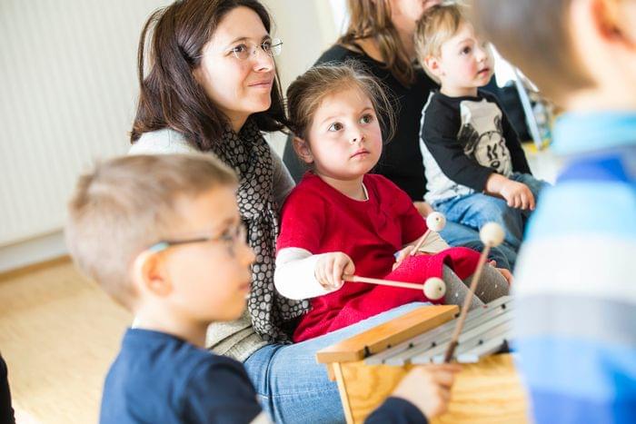 Das Fach „Elementares Musizieren in Eltern–Kind–Gruppen“ lädt Eltern und Kinder dazu ein, gemeinsam auf musikalische Entdeckungsreisen zu gehen. Durch Lieder, Verse, Finger- und Bewegungsspiele fördern wir spielerisch die sprachlichen, kognitiven, motorischen und sozialen Fähigkeiten. Beim Musizieren und Tanzen sind Sie als Eltern und Großeltern gleichermaßen Partner und Vorbild Ihres Kindes und festigen über das musikalische Spiel die Bindung zu Ihrem Kind. Außerdem wird Ihnen die Möglichkeit gegeben, Ihren persönlichen Zugang zur Musik weiterzuentwickeln, Spielideen, Lieder, Bewegungsanregungen für zu Hause „einzupacken“, um den familiären Alltag durch Musik und Tanz bunter zu gestalten.