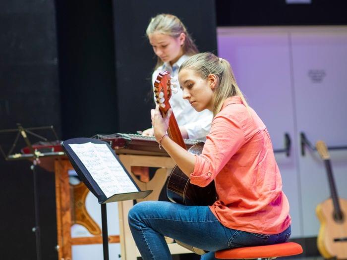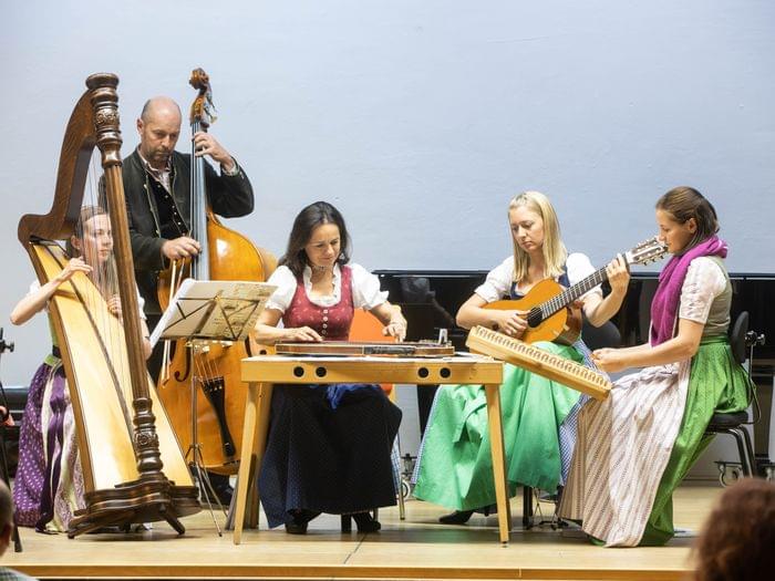 Volksmusik, Volkslieder und -tänze unserer Region den Kindern und Jugendlichen nahezubringen und sie so gleichzeitig lebendig zu halten, sind uns wichtig. Die Ausbildung im Bereich der Volksmusik hat am Musikum einen hohen Stellenwert. Das klassenübergreifende Musizieren im Ensembleunterricht in den verschiedensten Ausformungen und Zusammenstellungen ist ein wichtiger pädagogischer Bereich dieses Fachbereichs. Der Vielfalt sind keine Grenzen gesetzt. Auch innovative Strömungen finden Platz. In der Tanzlmusi oder dem Saitenmusikensemble musizierst du nicht nur innerhalb des Unterrichts, sondern auch bei Musikum-Projekten, öffentlichen Veranstaltungen, im Freien, bei geselligen Anlässen, bei Weihnachtsfeiern, Wettbewerben u.v.m.